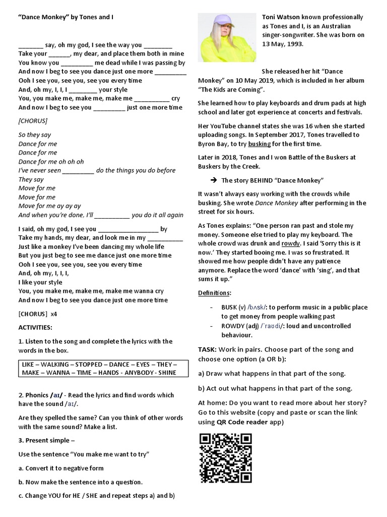 Dance Monkey Tones And I English Esl Worksheets For Distance Learning And Physical Classrooms